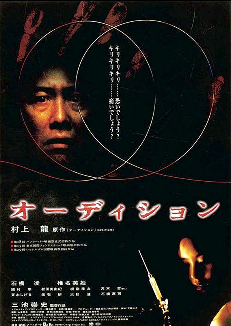 オーディションは、1999年公開の日本映画。日本での公開は2000年。映画のオーディションにやってきた女性の中から再婚相手を探そうとする中年男性が体験する恐怖を描いたサイコホラー映画。月刊誌「PENTHOUSE JAPAN」に連載された村上龍の同名小説を石橋凌主演で三池崇史が映画化した。