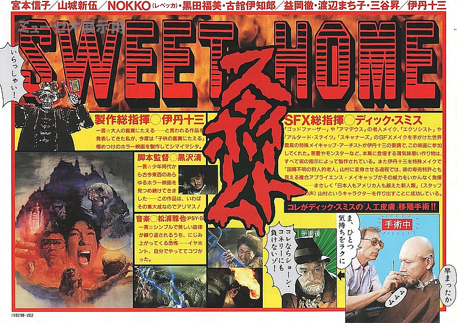スウィートホームは、1989年公開の日本映画。番組撮影の為、故人である画家の住んでいた山奥のとある洋館を訪れたTVクルーたちに襲いかかる恐怖を描いたホラー。監督は伊丹十三に抜擢され、本作品によりメジャーデビューを果した黒沢清。映画公開後、東宝よりレンタルビデオ用のビデオカセットおよびLDが発売されたが、このビデオを巡って監督の黒沢が伊丹プロと東宝を提訴した。ビデオ販売にともなう監督への追加報酬が合意されたか否か、ビデオ化およびテレビ放映に際してなされた編集が監督の著作者人格権を侵害しないか否かなどが争点となったが、黒沢の敗訴が確定している。