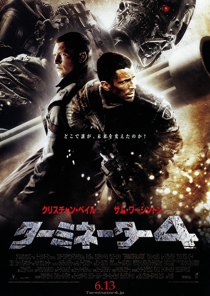 ターミネーター4は、2009年公開のアメリカ合衆国の映画。「ターミネーター」シリーズの第4作目で、『ターミネーター3』(2003年)の続編であると同時に、『ターミネーター』(1984年)の前日譚でもある。主演はクリスチャン・ベールとサム・ワーシントンで、アントン・イェルチン、ムーン・ブラッドグッド、ブライス・ダラス・ハワード、コモン、マイケル・アイアンサイド、ヘレナ・ボナム=カーターらが出演している。これまでの作品とは異なり、本作は2018年を舞台にした終末論的映画である。ベールはレジスタンスの戦士で中心人物であるジョン・コナーを、ワーシントンはサイボーグのマーカス・ライトを演じる。イェルチンは『ターミネーター』で初登場した若き日のカイル・リースを演じ、T-800ターミネーターの起源を描いている。