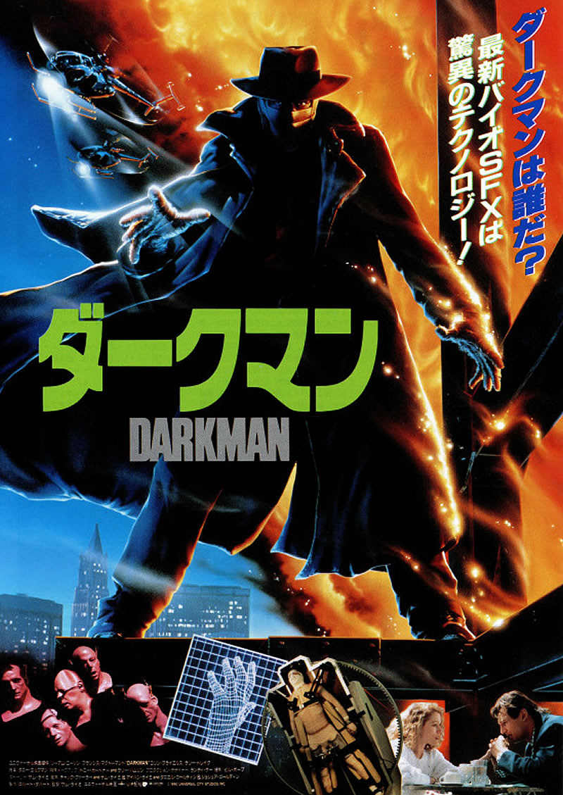 ダークマンは、1990年製作のアメリカ合衆国の映画。殺し屋によって瀕死の・火傷を負わされながら自らの開発した人工皮膚によって蘇った男--ダークマンの、現代版「オペラ座の怪人」とも言うべきモダン・クラシカルな復讐譚。サム・ライミ監督らしいコミック感覚あふれる映像が新鮮なアクション・スリラー。