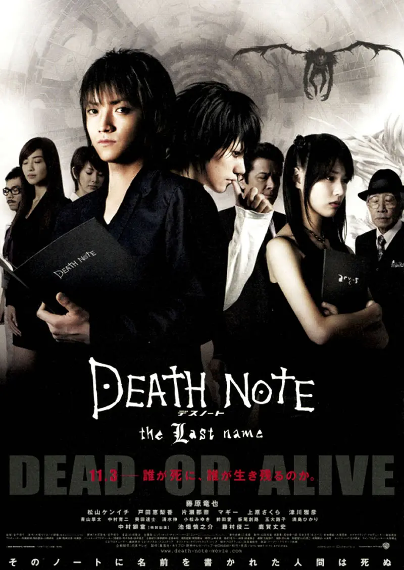 デスノート the Last nameは、2006年公開の日本映画。全体的なストーリーは原作の第一部と第二部の結末をベースに脚色したものとなっている。死神が落とした“死のノート=デスノート”で、キラとして犯罪者たちを裁く夜神月と名探偵Lとの対決は、死神レムともう1冊のデスノートの登場により、予想のつかない事態へと発展してゆく。「週刊少年ジャンプ」に連載され、圧倒的な人気を巻き起こしたカリスマ・コミックの実写版第2弾。