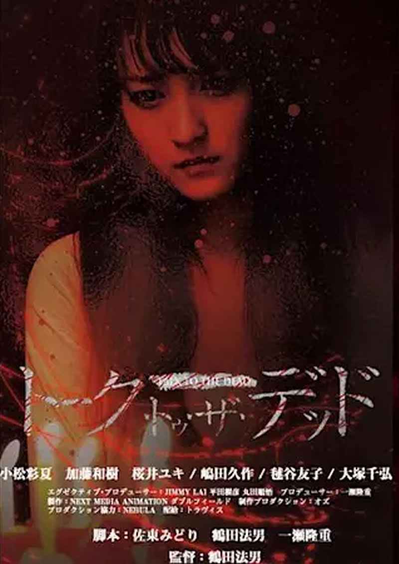 トーク・トゥ・ザ・デッドは、2013年公開の日本映画。『リング』『呪怨』シリーズなどに携わってきた一瀬隆重が、『ほんとにあった怖い話』シリーズの鶴田法男監督とタッグを組んだホラー。病気の弟を死なせてしまったと自責の念にかられるヒロインが、死者と対話できるというアプリを使ったことで想像を絶する恐怖を味わう姿を描く。モデル、女優として活躍中の小松彩夏をはじめ、加藤和樹、嶋田久作らが出演。