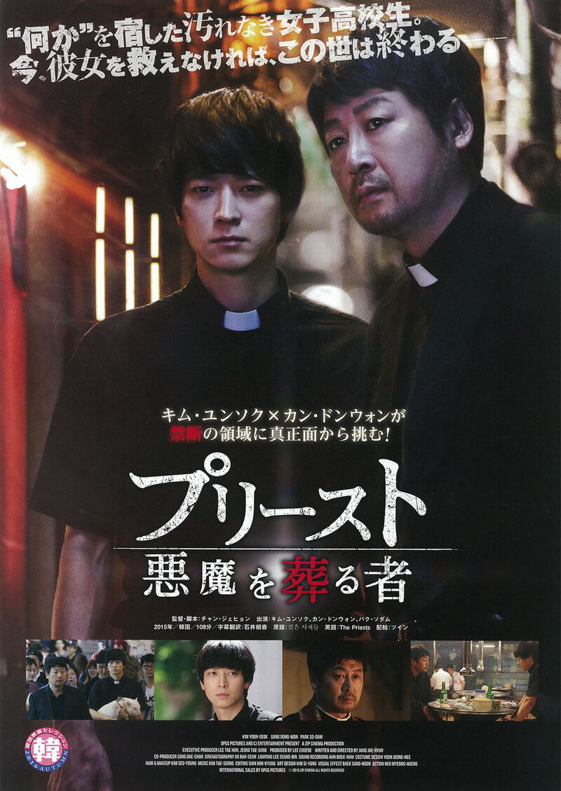 プリースト 悪魔を葬る者(ぷりーすとあくまをほうむるもの)は、2015年公開の韓国映画。『海にかかる霧』などのキム・ユンソクと『華麗なるリベンジ』などのカン・ドンウォンが共演し、悪魔払いというテーマに挑んだ異色サスペンス。交通事故に遭った後、何かに憑依された少女を救うため悪魔払いに挑む神父と神学生の危険なミッションに迫る。『殺されたミンジュ』などのパク・ソダムらが共演。魔物との手に汗握るバトルに衝撃が走る。