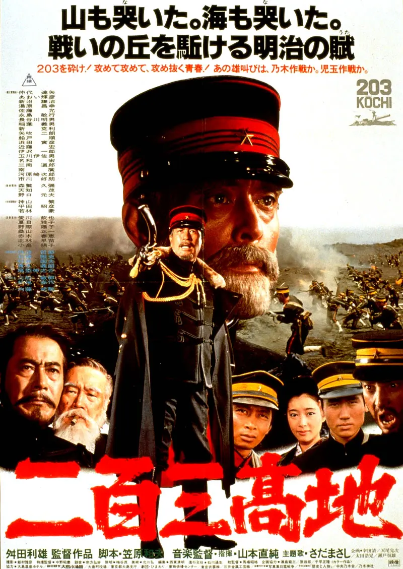 二百三高地は、1980年公開の日本映画。本作品は、“二百三高地”という激戦地で絶望的な戦いを強いられた日本兵士たちの戦争への怒りや、兵士間に芽生えた友情を描破すると同時に、日露戦争という歴史的事実に関わった人々の生き方を通して、米と絹しか産しない総人口四千六百万人の弱小民族であった日本が大国ロシアに何故戦いを挑み、如何に戦ったのかを壮大なスケールで再現する。