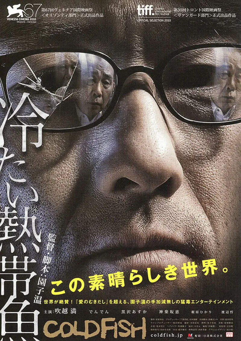 冷たい熱帯魚は、2010年公開の日本映画。園子温監督、脚本によるエロ・グロ描写が多いホラー・サスペンスで、1993年に起こった埼玉愛犬家連続殺人事件をベースとした物語。ふとしたはずみから極悪非道な男に取り込まれ、深い闇の世界へと落ちていく主人公の姿を鮮烈に描き出す衝撃の問題作。本作は映倫規定において、R18+(18歳未満は観覧禁止)に指定されている。