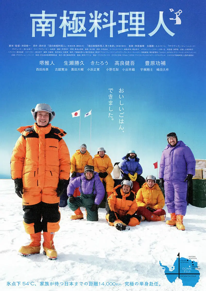 南極料理人は、2009年に公開された日本映画。原作は海上保安官出身の西村淳のエッセイ『面白南極料理人』。第50回日本映画監督協会新人賞最終候補作品。2009年度新藤兼人賞金賞、第29回藤本賞新人賞を受賞。この映画のロケ地となったのは、原作者・西村の出身地、真冬の北海道網走市である。南極の基地内で単身赴任生活を送る8人の男性たちの喜怒哀楽を、数々のおいしそうな料理とともに見せる作品。