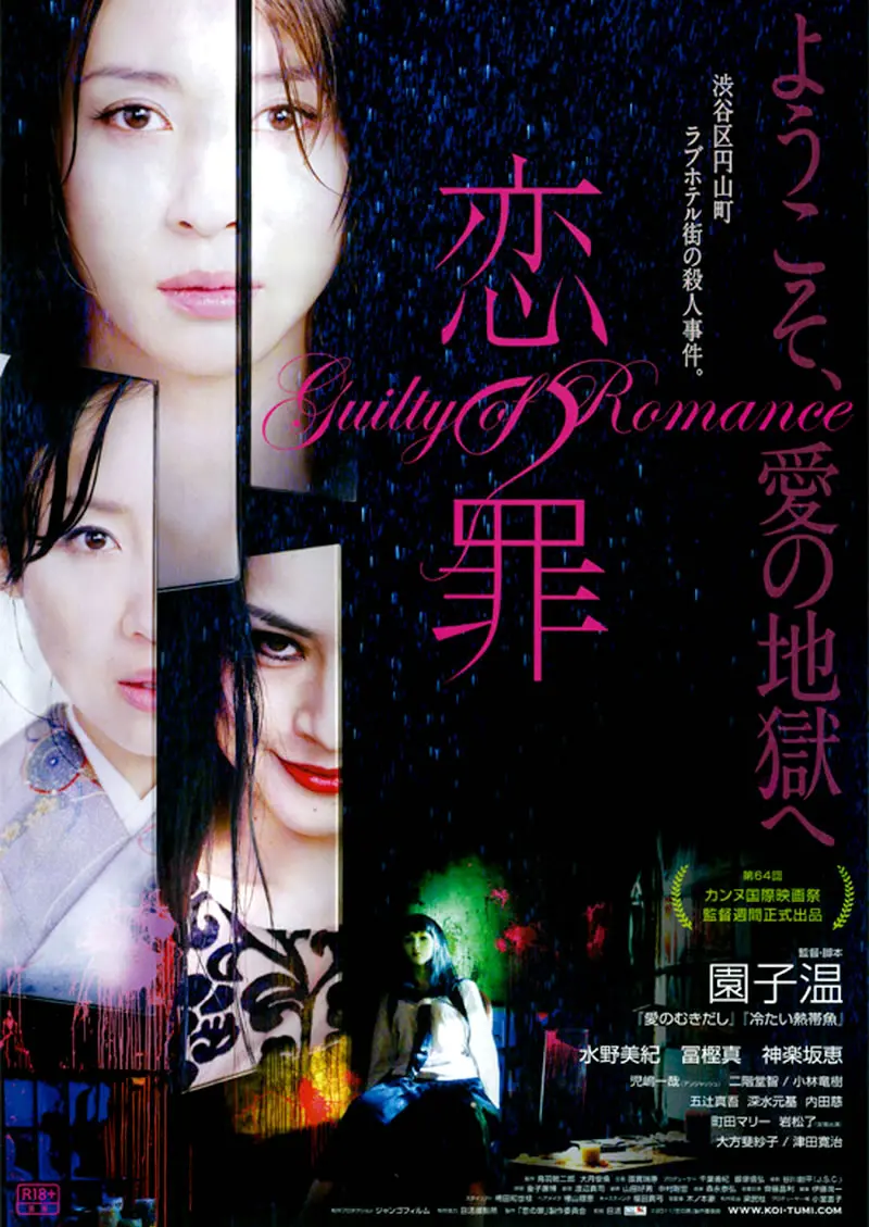 恋の罪は、2011年公開の日本映画。水野美紀、冨樫真、神楽坂恵3人の女たちの行き着く果て、誰も見たことのない壮絶な愛の地獄が始まる。1997年に渋谷区で発生した東電OL殺人事件からインスピレーションを得た作品ですが、ストーリーは、事件とはほぼ無関係な物語です。作品の内容や、それまで清純派のイメージが強かった水野美紀がヘアヌードになったことでも注目を集め、単館系の作品ながら興行収入一億円を突破するヒットした。
