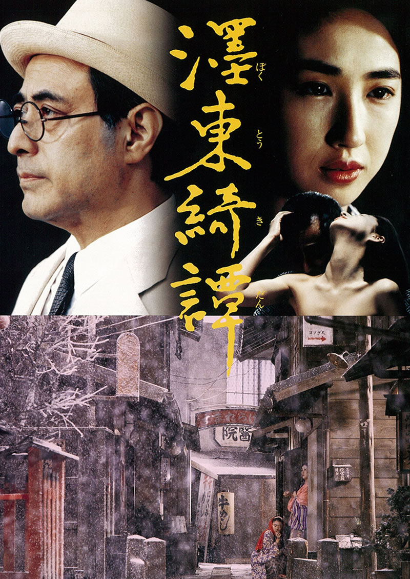 濹東綺譚(ぼくとうきだん)は、1992年公開の日本映画。荷風の小説中、最高傑作ともされ、1960年・1992年(今作)・2010年に映画化された。私娼窟・玉の井を舞台に、小説家・大江匡と娼婦・お雪との出会いと別れを、季節の移り変わりとともに美しくも哀れ深く描いている。墨田ユキの鮮烈ヌードは当時話題をさらった。
