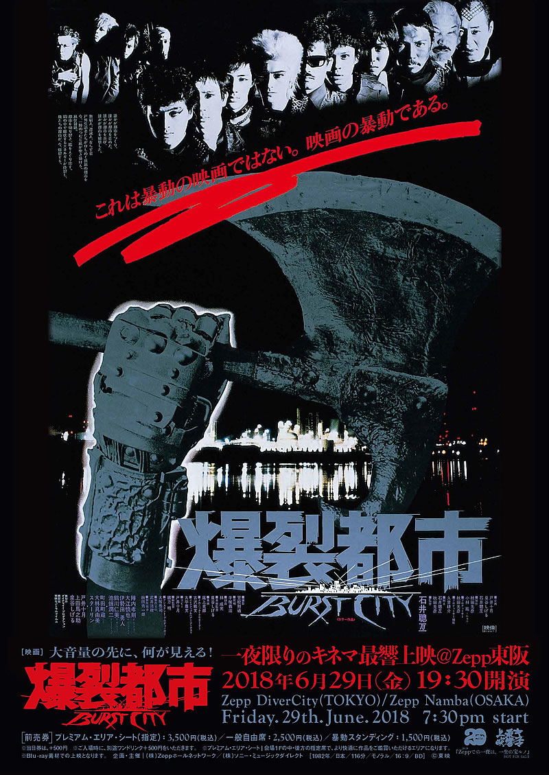 爆裂都市 BURST CITYは、1982年公開の日本映画。石井聰亙(のちの石井岳龍)監督の8作目の作品。1980年に発表した自主制作映画『狂い咲きサンダーロード』でさまざまな賞を受賞し、各方面から脚光を浴びていた石井監督による、荒廃した近未来を舞台とした作品。過激なパフォーマンスを繰り広げるロックバンドに熱狂する若者たちと、それを取り締まろうとする武装警察の衝突および、原子力発電所を建設するために強制労働や立ち退きを迫る暴力団に対して不満が爆発したスラムの住民たちの暴動を同時に描く。陣内孝則、大江慎也、町田町蔵(のちの町田康)、泉谷しげるなどのミュージシャンがメインキャストに起用された。この映画が初主演となった陣内はその後俳優としての活動を本格化させる。