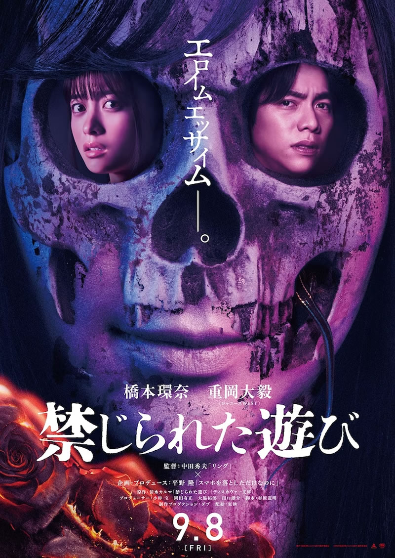 禁じられた遊びは、2023年公開の日本映画。事故で亡くなった母が生き返ることを願い、父から冗談半分で教えられたタブーを犯してしまった息子を不気味な出来事が襲う。「リング」シリーズの中田秀夫監督が橋本環奈と重岡大毅(ジャニーズWEST)を主演に迎え、作家・清水カルマのデビュー作である同名ホラー小説を映画化。「貞子」の杉原憲明が脚本を担当。堀田真由、倉悠貴、長谷川忍(シソンヌ)、猪塚健太、MEGUMI、清水ミチコ、新納慎也らが共演し、怨霊となった美雪をファーストサマーウイカが特殊メイクを施して演じている。