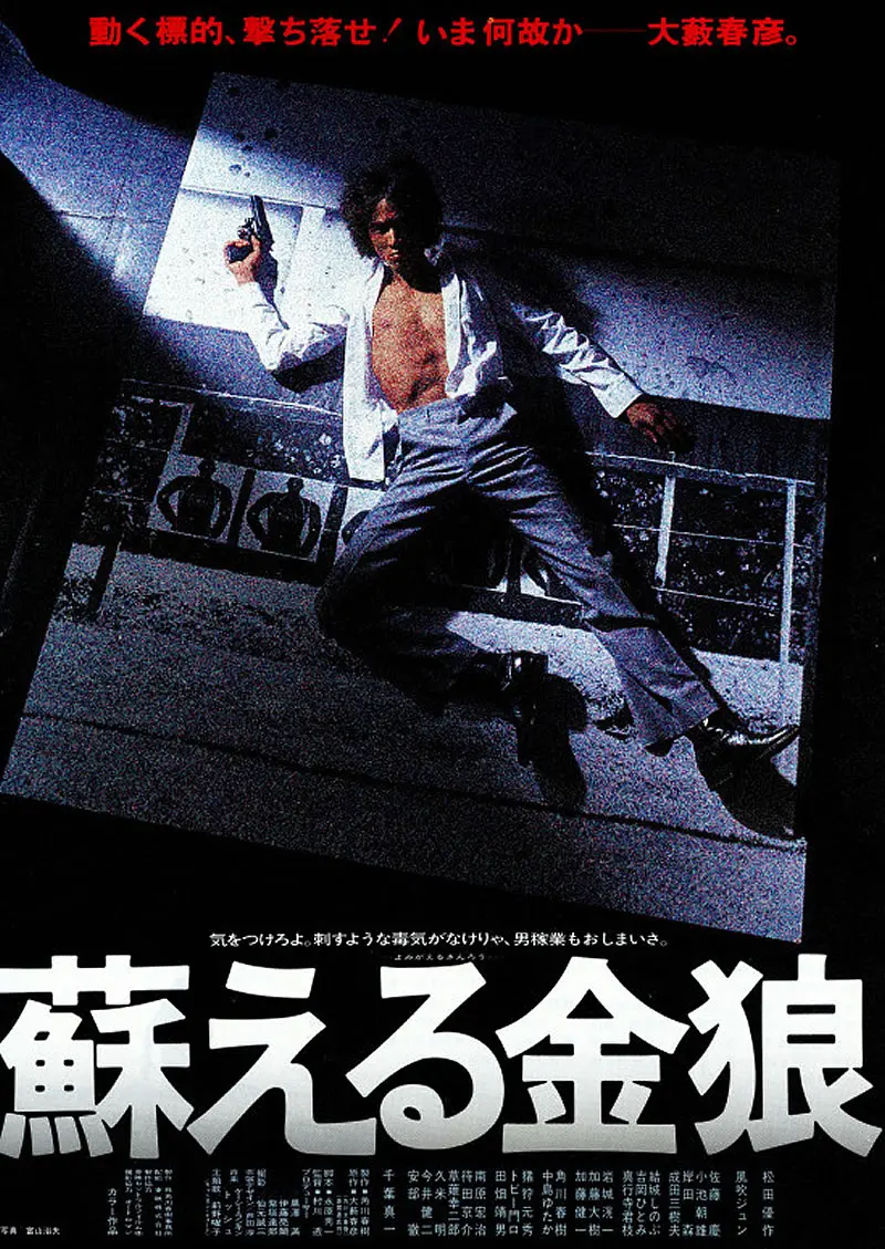 蘇える金狼(よみがえるきんろう)は、1979年公開の日本映画。大藪春彦の小説。これを原作とした同名の映画。「動く標的、撃ち落とせ!」 「気をつけろよ、刺すような毒気がなけりゃ、男稼業もおしまいさ―」 昼は平凡なサラリーマン、しかし夜には組織へ反逆の牙を剥く一匹の狼へと変貌する主人公朝倉哲也。彼は鍛え上げられた肉体と天才的頭脳を武器に、自らの野望を果たすべく、悪の限りを尽して大企業や暴力団へ次々と挑んでいく。