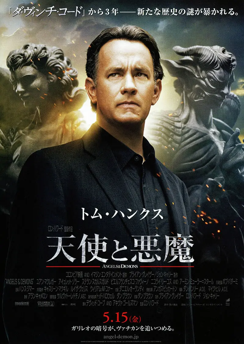 天使と悪魔は、2009年公開のアメリカ合衆国の映画。「ダ・ヴィンチ・コード」に続く、宗教象徴学者ロバート・ラングドンを主人公にしたダン・ブラウンのベストセラー小説の映画化第2弾。イタリアのローマで400年の時を超えてよみがえった秘密結社・イルミナティによるバチカンへの復讐(ふくしゅう)を阻止するべく、ガリレオの暗号コードに挑む宗教象徴学者・ラングドンの活躍を描く。