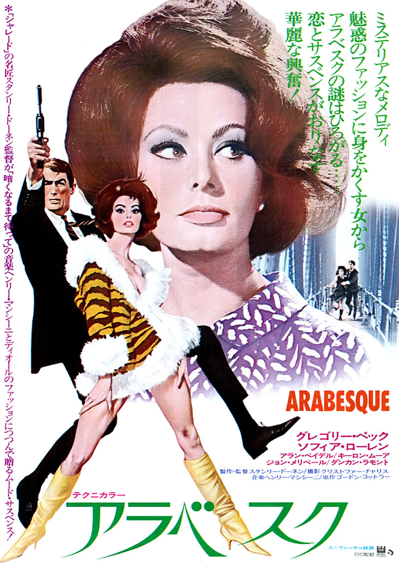 アラベスクは、1966年公開のアメリカ合衆国の映画。国家的陰謀に巻き込まれながらも、真相に迫るサスペンス・ドラマをスリル満点に描く。ゴードン・コットラーの小説『暗号』を、ジュリアン・ミッチェル、スタンリー・プライス、ピエール・マートンの3人が脚色、「シャレード」のスタンリー・ドーネンが製作・監督したスパイ・アクション。ローレンが作中で纏うゴージャスな衣装もディオールのオートクチュール。