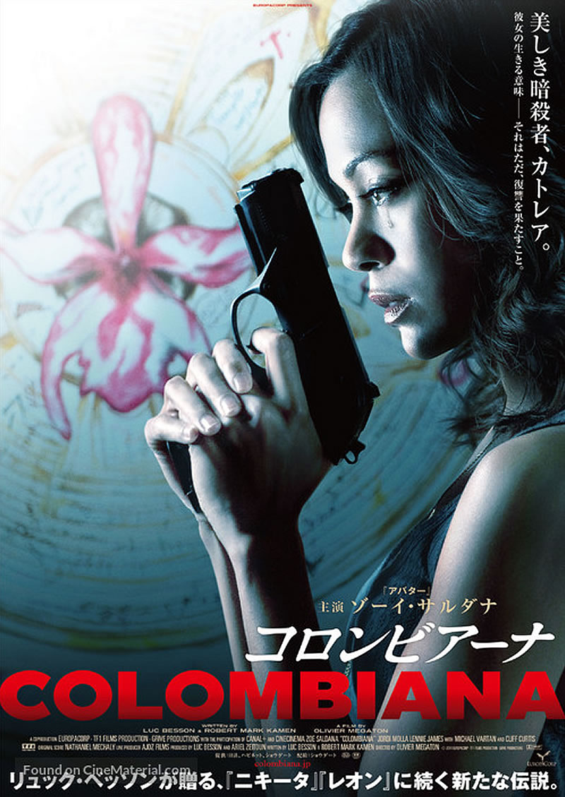 コロンビアーナは、2011年公開のフランス・アメリカ合衆国合作映画。幼少の頃目の前で家族を殺され復讐に燃える女殺し屋の姿を描いたアクション。「アバター」「スター・トレック」のゾーイ・サルダナが、スレンダーな体躯をしなやかに動かし、時には冷徹なまでに任務を遂行し時には心優しい一面を見せる女殺し屋を美しく演じている。