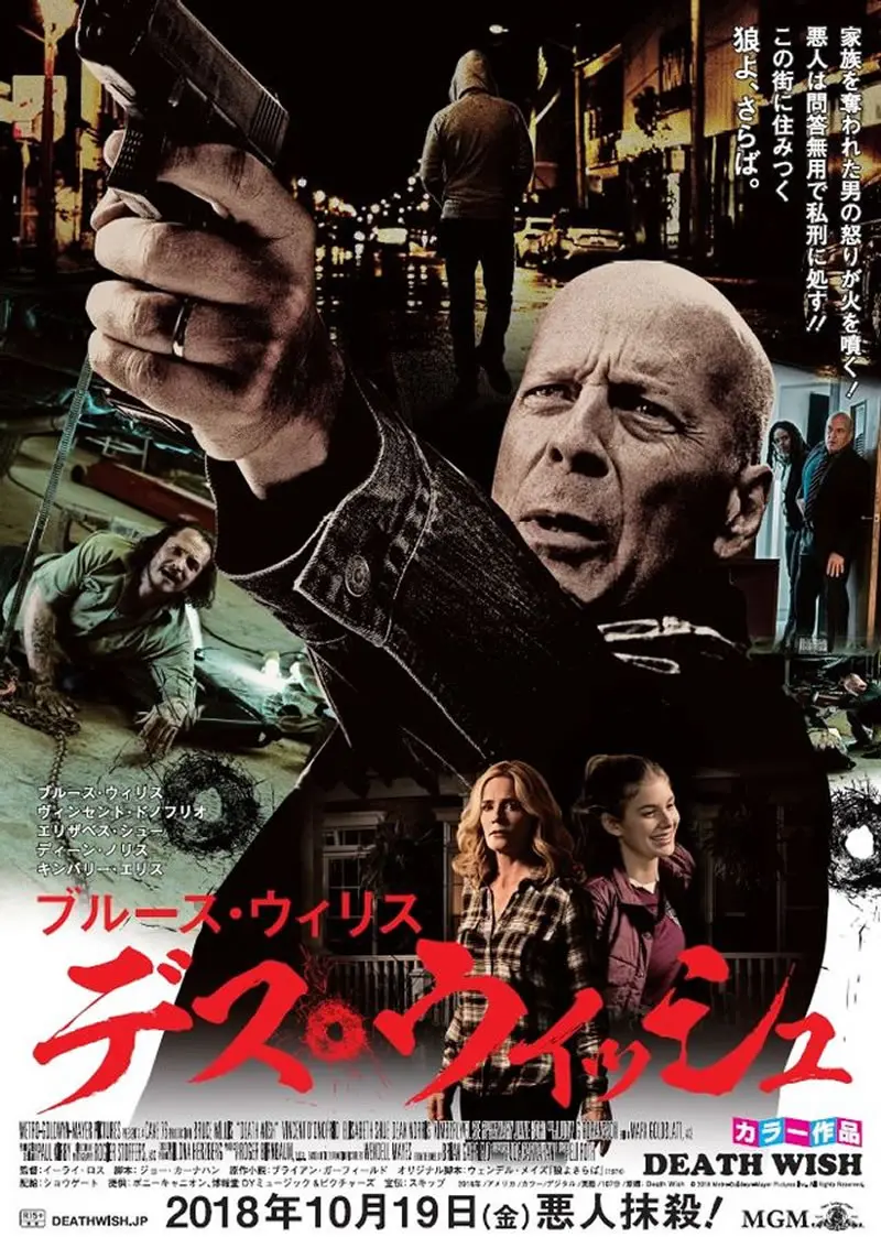 デス・ウィッシュは、2018年公開のアメリカ合衆国の映画。本作はブライアン・ガーフィールドが1972年に上梓した小説『狼よさらば』を原作とした映画作品『狼よさらば』(Death Wish)のリメイク作である。チャールズ・ブロンソン主演で全5作のシリーズ化を果たした1974年の伝説的作品『狼よさらば』が現代的エッセンスを加えて新たに蘇る!監督は『グリーン・インフェルノ』『ノック・ノック』の鬼才イーライ・ロス。本作で自身初となるアクション大作に臨む!脚本を『特攻野郎Aチーム THE MOVIE』の監督&脚本を務めたジョー・カーナハンが担当する。