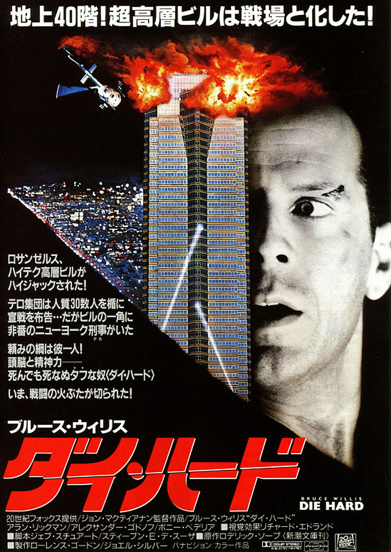 ダイ・ハードは、1988年公開のアメリカ合衆国の映画。別居中の妻に会うため、ロサンゼルスにやってきたニューヨーク市警の刑事ジョン・マクレーンが、ドイツ人テロリストのハンス・グルーバー率いるテロリスト集団によって占拠された高層ビルで奮闘するアクション。監督はジョン・マクティアナン、脚本はジェブ・スチュアートとスティーブン・E・デ・スーザ。主演をブルース・ウィリス、敵のリーダーをアラン・リックマンが務める。タイトルの「Die Hard」は「なかなか死なない」の意。