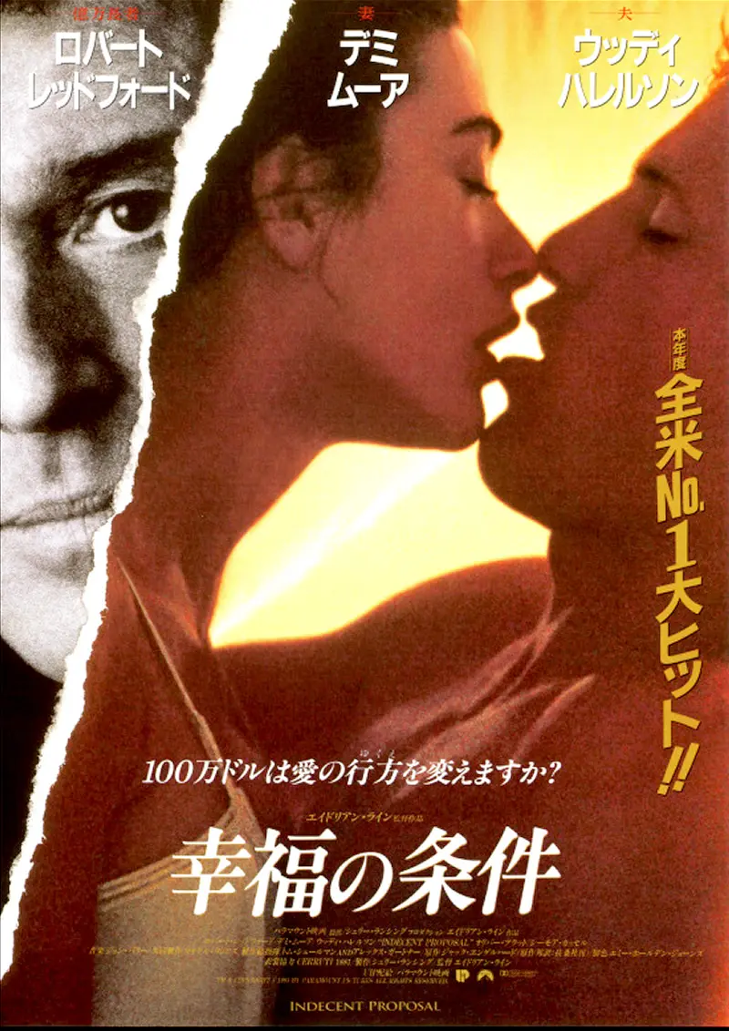 超大作みたいな豪華で演技力もあるキャストなのに、全てが薄味でこれほど無駄使いな映画も稀だと思えるクソとも捉えられる映画です。この映画のテーマはお金で愛を買えるのか?なのですが、脚本が薄味過ぎて、キャストが豪華じゃないと成立しないようなものになっています。この作品の唯一の見どころは、デミ・ムーアとウディ・ハレルソンの濡れ場シーンですといってしまいたくなるほど印象が残らないんです。