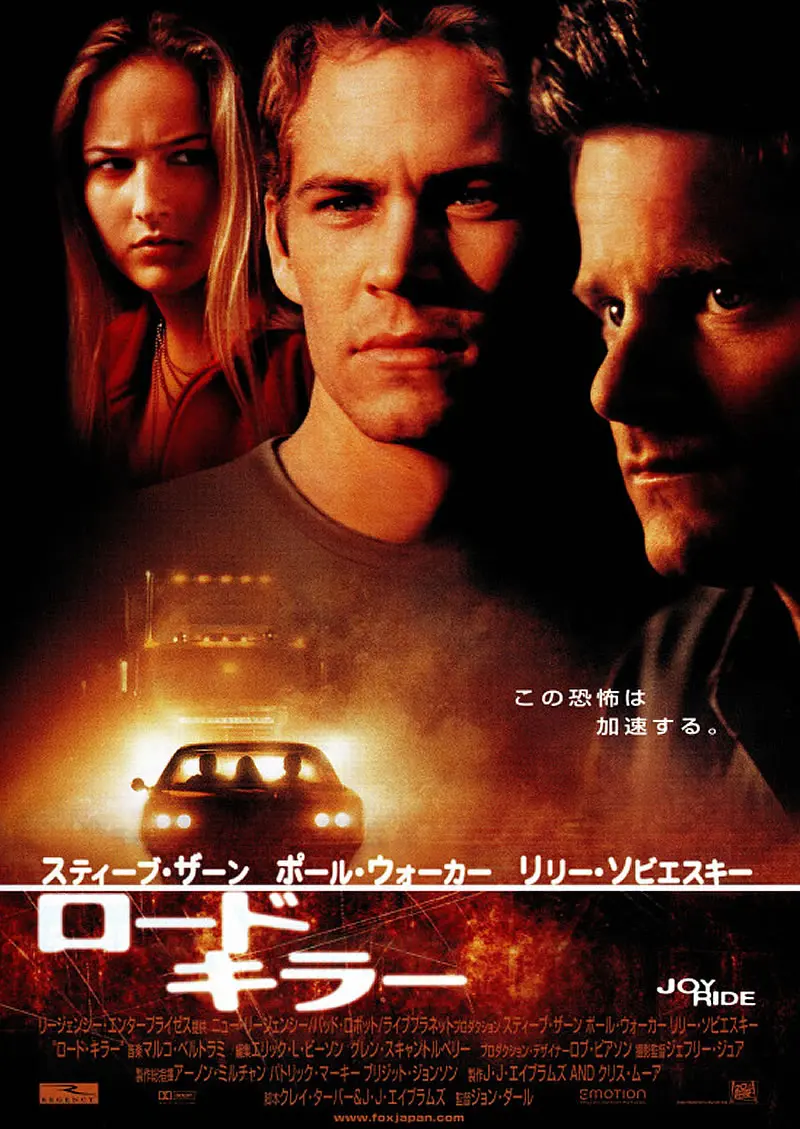 ロードキラーは、2001年公開のアメリカ合衆国の映画。畳みかけるような恐怖に戦慄。恐怖のドライヴ・ツアーを描くロード・スリラー。製作・脚本は「アルマゲドン」などの脚本家J・J・エイブラムズ。スティーヴン・スピルバーグと親交があるJ・J・エイブラムスが制作を務めた、スピルバーグの映画『激突!』の青春スリラー版と称される映画である。批評家から概ね肯定的な評価を受けました。本作のヒットから後にビデオオリジナルの続編全3作品が制作されている。
