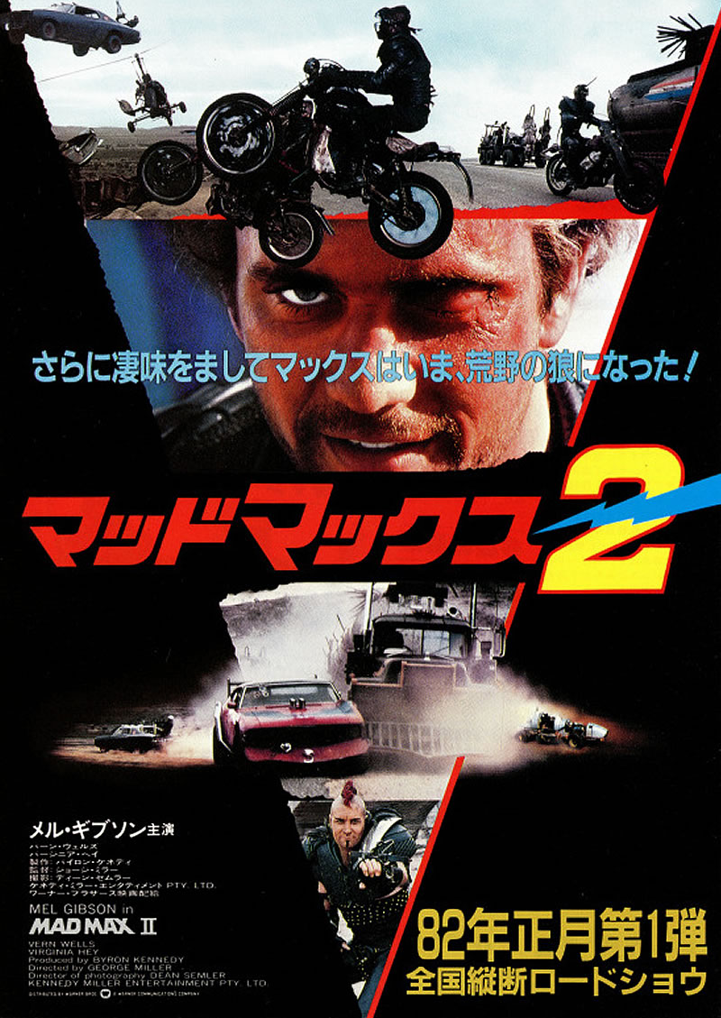 マッドマックス2は、1981年公開のオーストラリアの映画。石油パニックに陥った退廃的な社会を背景に凶悪化したハイウェイの殺し屋たちに挑む一匹狼の警官マックスの活躍を描くアクションで「マッドマックス」の続篇。前作のヒットを受け、約10倍の費用をかけて製作されたバイオレンス・アクション映画。大国同士による戦争後の荒廃した舞台設定、モヒカンヘアーで暴れまわる暴走族などを描いた世界観は、1980年代全般のSF映画をはじめ、『北斗の拳』など多くの作品に影響を与えた。監督のジョージ・ミラーは本作を作るにあたり、世界各地の英雄神話を研究した書物であるジョゼフ・キャンベルの『千の顔を持つ英雄』を参考にしている。