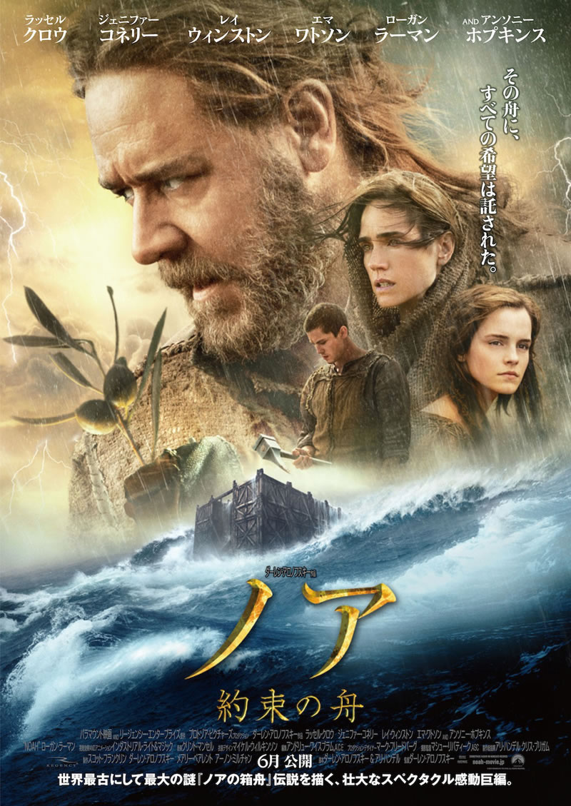ノア 約束の舟は、2014年公開のアメリカ合衆国の映画。ダーレン・アロノフスキー監督、ラッセル・クロウ主演によるスペクタクル巨編。すべてを滅ぼし新たな世界を創るという神のお告げを背負ったノアが、人間同士の争いや家族への愛などに苦悩しながら課せられた使命に殉じる姿を描く。公開後、フィクションにも関わらず宗教関係者・信徒・環境保護活動家などから批判が起こったものの、映画批評家や観客などから概ね評価が高い作品だった。しかし、2014年度(第35回)ラジー賞においては最低監督賞、最低スクリーンコンボ賞、最低脚本賞、最低リメイク・盗作・続編賞の4部門でノミネート候補リストに入った。