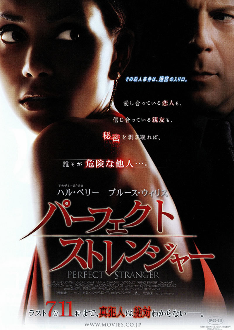 パーフェクト・ストレンジャーは、2007年公開のアメリカ合衆国の映画。幼馴染の死の真相を暴くべく広告業界の大物の下へ潜入する女性記者を描くサスペンス映画である。「シックス・センス」のブルース・ウィリスとオスカー受賞女優ハル・ベリーのハリウッド二大スターによるサスペンス映画。