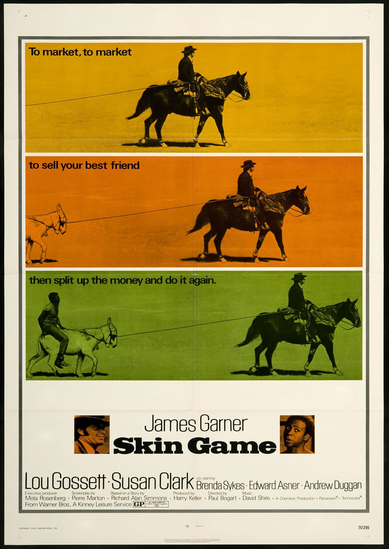 2014年に亡くなったジェームズ・ガーナーのとぼけた味わいのある演技と「愛と青春の旅立ち」で鬼教官を演じたルイス・ゴセット・Jrの若き日の姿が観られるウエスタン・コメディ。奴隷制度のあった1857年、白人のクインシーと黒人のジェイソンは所有者と奴隷になりすまして競売を行い、売られたジェイソンがすぐに脱走して稼いだ金を山分けしていた。ところがある日、奴隷商人のプランケットに目をつけられ事態は急変。ジェイソンは奴隷収容所、クインシーは留置場行きとなってしまう…。