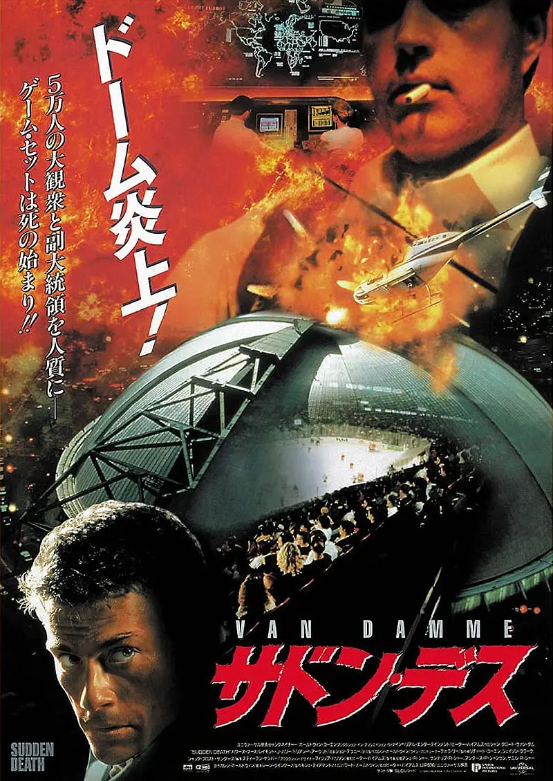 サドン・デスは、1995年公開のアメリカ合衆国の映画。超満員の巨大ドーム競技場で、合衆国副大統領と5万人の大観衆を人質にとった凶悪なテロリスト集団に立ち向かう、不死身のヒーローの活躍を描いたサスペンス・アクション大作。監督・撮影は「タイムコップ」のピーター・ハイアムズ、主演も同作のジャン・クロード・ヴァン・ダムで、ヴァン・ダムの体を張ったアクションと、スペクタクル性豊かな演出が見もの。