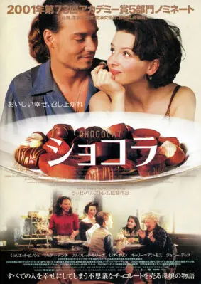 ショコラは、2000年公開のアメリカ合衆国の映画。不思議なチョコレートを売る母娘の物語。宗教と人間関係の複雑な絡み合い、そして大人の事情に飲み込まれている子供たち、また、愛する人を遠く思い続ける大人たちの感情が秘められた映画。ラッセ・ハルストレム監督、ジュリエット・ビノシュ&ジョニー・デップ出演。第73回アカデミー賞5部門ノミネート。映画批評・あらすじ(ネタバレ)・スタッフ・キャスト・映画予告編・無料動画・配信情報。