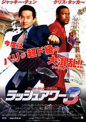 ラッシュアワー3は、2007年公開のアメリカ合衆国の映画。リー捜査官とカーター刑事がマフィアとの壮絶な死闘を繰り広げるアクション・ムービー・シリーズ第3弾。監督は前作に引き続きブレット・ラトナー。出演はのジャッキー・チェン、クリス・タッカー、真田広之ほか。映画批評・あらすじ(ネタバレ)・スタッフ・キャスト・映画予告編・無料動画・配信情報。