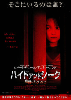 ハイド・アンド・シーク 暗闇のかくれんぼは、2005年公開のアメリカ合衆国・ドイツ合作映画。傷心の少女と父親をめぐって古い一軒家で巻き起こる怪事件を描いたスリラー。ロバート・デ・ニーロとダコタ・ファニング主演のスリラーで、公開当時、日本では数箇所だけで別パターンのエンディングを上映して話題を呼んだ。DVDでは更に別のパターンを収録している。映画批評・あらすじ(ネタバレ)・スタッフ・キャスト・映画予告編・無料動画・配信情報。