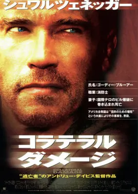 コラテラル・ダメージは、2002年公開のアメリカ合衆国の映画。テロリストによって愛する妻と子どもの命を奪われたひとりの消防士が、国家的利益のために犯人を捕まえようとしない政府に成り代わり、単身で強大な敵に立ち向かうアクション・スペクタクル。シュワルツェネッガーが決して無敵のヒーローではない等身大の人間として必死の闘いを繰り広げる。監督は、「沈黙の戦艦」のアンドリュー・デイヴィス。撮影は、「ラッシュアワー」のアダム・グリーンバーグ。音楽は、「トゥームレイダー」のグレイム・レベル。映画批評・あらすじ(ネタバレ)・スタッフ・キャスト・映画予告編・無料動画・配信情報。