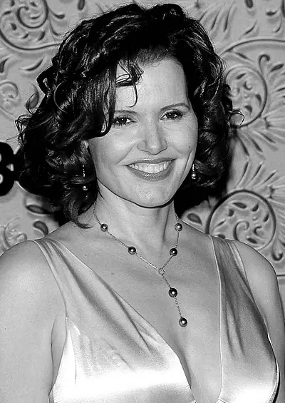 下着メーカーのカタログで彼女を見たシドニー・ポラック監督に抜擢され、1982年、『トッツィー』で映画デビュー。1986年、『ザ・フライ』で注目を集める。以降、1988年『偶然の旅行者』で動物病院の従業員を演じ、アカデミー助演女優賞を受賞。1991年『テルマ&ルイーズ』でテルマ役を演じ、アカデミー賞主演女優賞及びゴールデングローブ賞にノミネートされる。野球のキャッチャー役に扮した1992年『プリティ・リーグ』でも、ゴールデングローブ賞にノミネートされている。2006年、『マダム・プレジデント 星条旗をまとった女神』で第63回ゴールデングローブ賞で主演女優賞(ドラマ部門)を受賞。エミー賞にもノミネートされた。2019年の第92回アカデミー賞ではジーン・ハーショルト友愛賞が授与された。