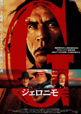 ジェロニモは、1993年公開のアメリカ合衆国の映画。合衆国騎兵隊を相手に抵抗した伝説のアパッチ族の戦士ジェロニモの人間像を描き、アメリカの歴史の暗部に光を投げかけた西部劇。名作「駅馬車(1939)」をはじめ、過去16作で描かれてきたジェロニモ像と異なり、誇り高く時に猛々しい戦士として描いた点が注目される。映画批評・あらすじ(ネタバレ)・スタッフ・キャスト・映画予告編・無料動画・配信情報。