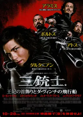 三銃士/王妃の首飾りとダ・ヴィンチの飛行船は、2011年公開のドイツ・フランス・イギリス・アメリカ合衆国合作映画。ダルタニアンと三銃士の活躍を、壮大なVFXを駆使して描くアドベンチャー。「バイオハザード」シリーズのポール・W・S・アンダーソン監督が、デュマの名作を3D映画化。映画批評・あらすじ(ネタバレ)・スタッフ・キャスト・映画予告編・無料動画・配信情報。
