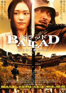 BALLAD 名もなき恋のうたは、2009年公開の日本映画。アニメ映画『クレヨンしんちゃん 嵐を呼ぶ アッパレ!戦国大合戦』を原案とした作品で、主演の草彅剛が演じる武士と新垣結衣が演じる姫のラブストーリーを実写化した。映画批評・あらすじ(ネタバレ)・スタッフ・キャスト・映画予告編・無料動画・配信情報。