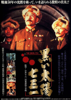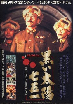 黒い太陽七三一 戦慄!石井七三一細菌部隊の全貌 1988年公開の香港映画。香港映画分類システムで初のレベル3認定(18禁)された最初の作品。関東軍石井731部隊の日中戦争・太平洋戦争時の人体実験の描写が主なテーマとなっており、グロテスクなエピソードが多いが、それらの多くは森村誠一のルポ『悪魔の飽食』に紹介されているものでもある。