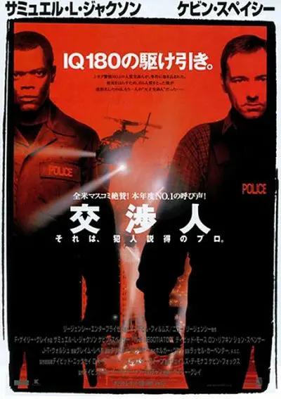 交渉人(こうしょうにん)は、1998年公開のアメリカ合衆国の映画。個性派俳優の競演でスリリングな頭脳戦が繰り広げられるサスペンス・アクション!IQ180の駆け引きを演じるのはサミュエル・L・ジャクソンとケビン・スペイシー。映画批評・あらすじ(ネタバレ)・スタッフ・キャスト・映画予告編・無料動画・配信情報。