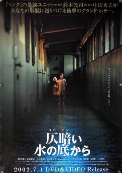 仄暗い水の底から(ほのぐらいみずのそこから)は、2002年公開の日本映画。「水」という日常不可欠なアイテムが恐怖のシークエンスへと変化していく様を描く。『仄暗い水の底から』(ほのぐらいみずのそこから)は、鈴木光司のホラー短編集、およびその映画化作品である。水と閉鎖空間をテーマとした7編の物語が収録され、そのうちの1編「浮遊する水」が映画化された。