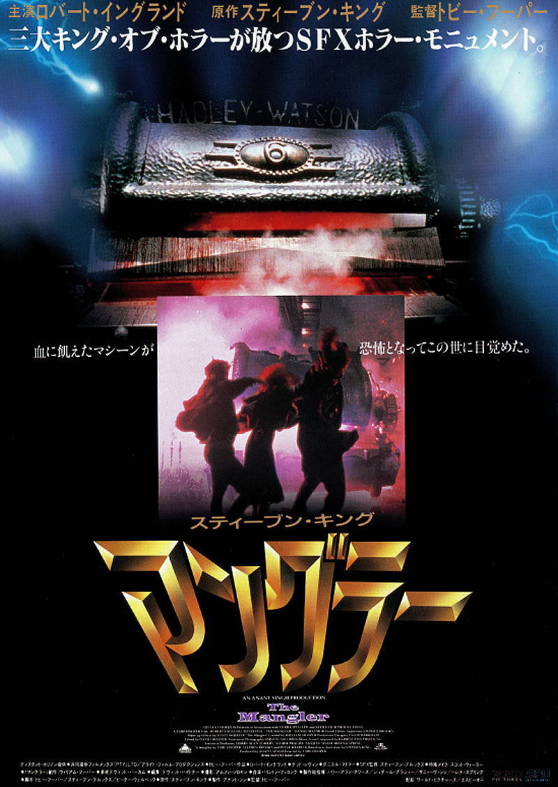 マングラーは、1995年公開のアメリカ合衆国の映画。スティーヴン・キングの短編小説『人間圧搾機』の映画化。そのタイトル通り生きたまま機械に巻き込まれてプレスされるという見せ場たっぷりのホラー映画。