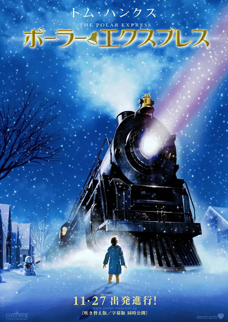 ポーラー・エクスプレスは、2004年公開のアメリカ合衆国の映画。クリスマス本の定番として人気を集めるクリス・ヴァン・オールズバーグの名作絵本『急行「北極号」』を映画化したファンタジー・アニメ。クリスマスの夜に北極点行きの謎の汽車に乗った少年が体験する不思議な出来事を幻想的に描く。監督は「フォレスト・ガンプ/一期一会」のロバート・ゼメキス。トム・ハンクスが一人で5役の声を担当している。