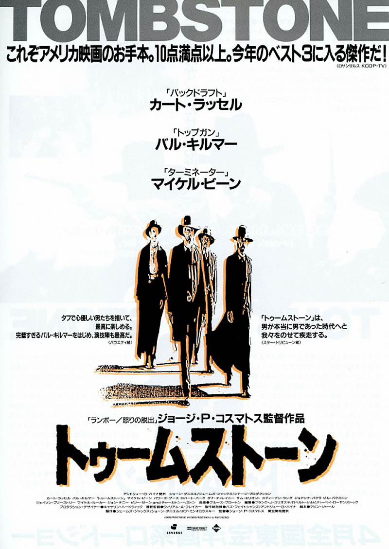 トゥームストーンは、1993年公開のアメリカ合衆国の映画。実在した西部開拓期の英雄、ワイアット・アープと親友ドク・ホリデイの戦いと友情を描いたウエスタン大作。「荒野の決闘」「OK牧場の決斗」など過去に幾度も映画化された題材を、今回は従来の解釈と異なり、わずか約2分間のOKコラルでの決闘描写をはじめ史実を重視して描いている。監督は「コブラ」「リバイアサン」のジョージ・P・コスマトス。